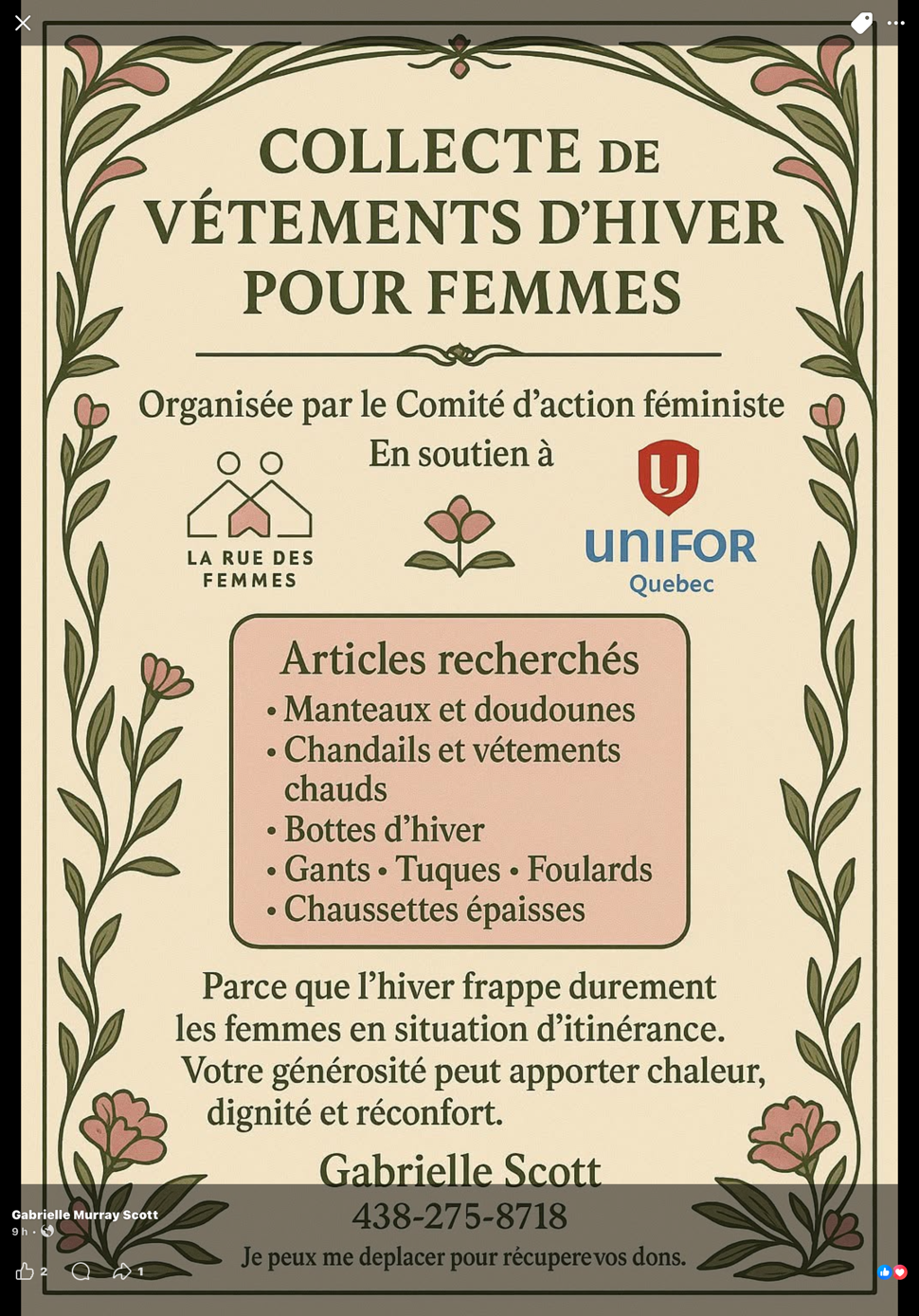 Campagne de collecte de vêtements d’hiver pour femmes